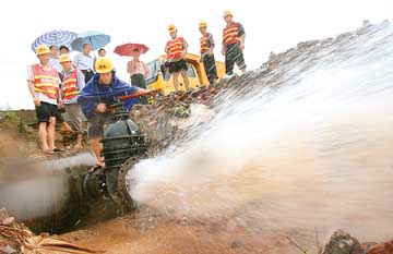(2)供水管网高压冲洗的常规做法: 管道断口--高压水车取水每次约1吨左右--将清洗枪头放入管道--启动高压枪,开始冲洗--大量清水冲洗,直至出清水为止--封闭断口加药消毒--静止约12小时--末梢放水冲洗。